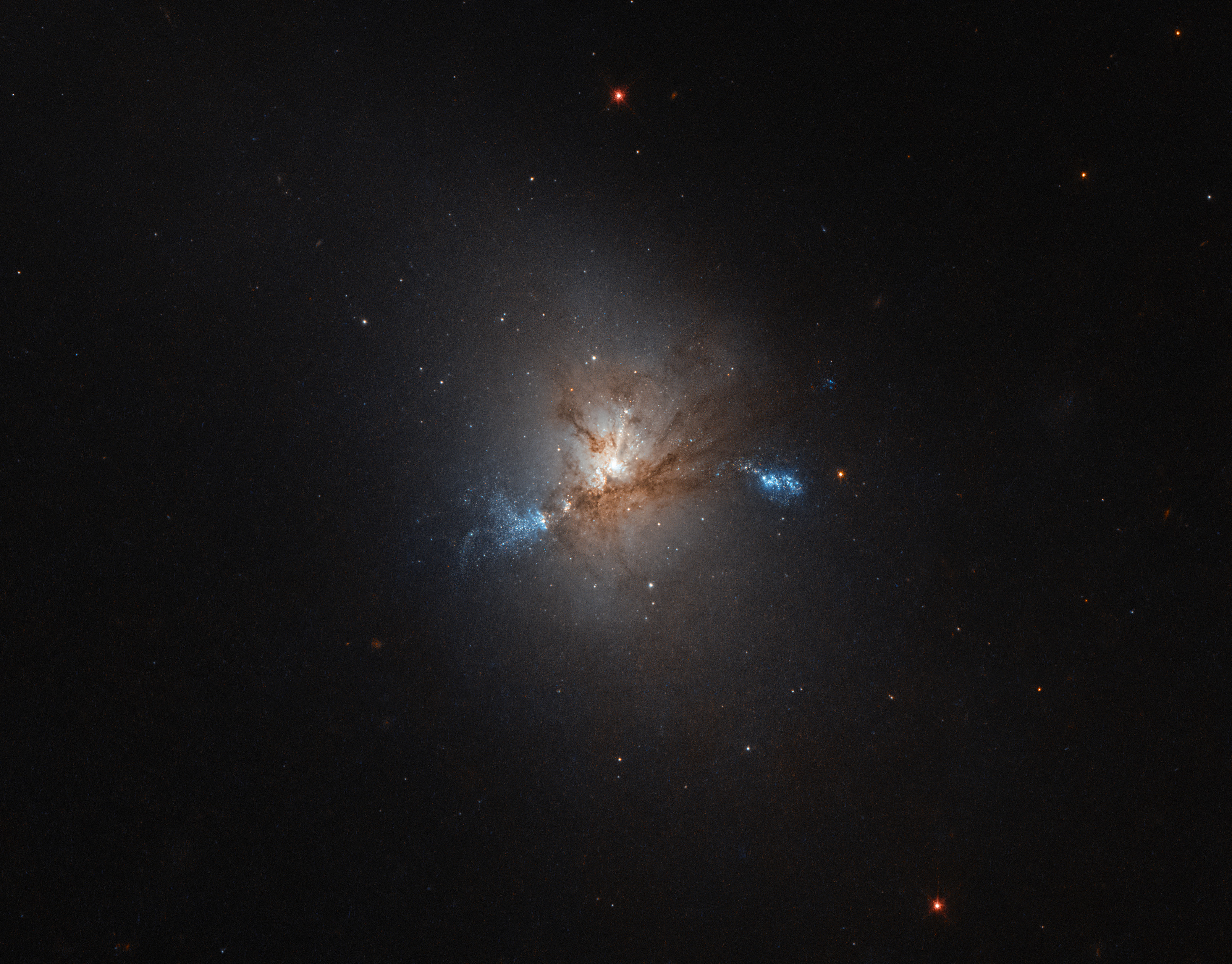 Conheça NGC 1222, uma "lenticular", ou galáxia em forma de lente que está atualmente no processo de devorar duas galáxias anãs próximas. O gás recém-adquirida e poeira em NGC 1222 tem causado uma onda de novas explosoes de nascimentos estrelas que está iluminando a galáxia. Esta foto foi feita pela lente Largo 3. Field Camera do Telescópio Espacial Hubble - Hanneke Weitering